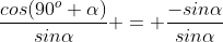 З рівності α-β = 1800 маємо α = 1800+β. За формулами зведення sinα = sin(1800+β) = -sinβ. Тоді sinα+sinβ = -sinβ+sinβ = 0. - 1-sinαctgαcosα =