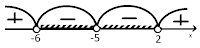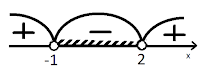 Розв'яжемо отриману нерівність за методом інтервалів.