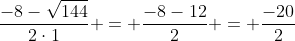 D = 82-4⋅1⋅(-20) = 64+80 = 144.