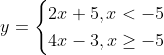, то це означає, що якщо аргумент функції менше -5, то значення функції треба обчислювати за першим рядком (2х+5), а якщо значення аргумента більше або дорівнює -5, то значення функції треба обчислювати за другим рядком (4х-3).